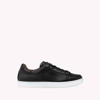 メタルアイレットで装飾されたレザー製のLow Topスニーカー。シューレースとラバー製のソールは本体と同系色で揃えています。