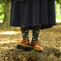 吸湿性や保温性のあるウールは、寒い冬はもちろん、汗をかく夏もさらっとした履き心地で、1年を通して活躍します。ギフトにも喜ばれます。足元からチラリと覗くキュートなデザインが、こなれ感あふれるお洒落コーデを完成させます。