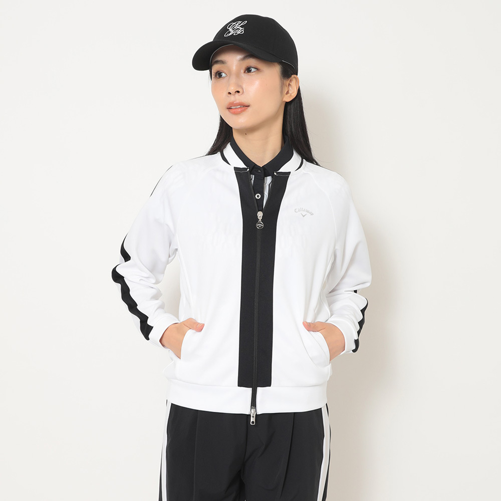 袖、フロント、襟リブに配色デザインを加え、スポーツテイストに仕上げました。ジップのオリジナルロゴスライダーがアクセントです。