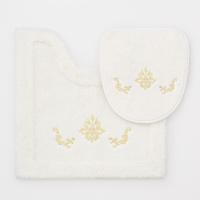 トイレマット、フタットシート(吸着式トイレ蓋カバー)がセットになったお買得なトイレタリー2点セット。踏み心地の良いボリュームのトイレマット、肌触りの良いフタットシートに刺しゅうの入った豪華なデザイン。統一したデザインでプライベートルームを落ち着いたリラックス空間に演出します。