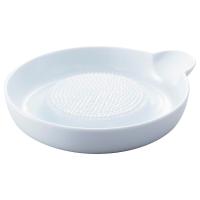丸い片口は、親指を添えるとおろしやすく安定し、持ちやすい。底部分には、すべり止めのシリコン付。釉薬はガラス質なので無機質で味や臭い移りがありません。また酸にも強い素材になります。