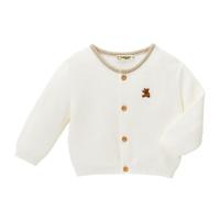 ワンポイントのミキハウスベアの刺しゅう が上品なニットカーディガン