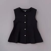 ハリ感のあるダブルクロス素材を使用したベスト。フレアの入ったペプラムシルエットが大人っぽいアイテム。ネックはV にすることで、襟つきブラウス合わせでもすっきり着られます。セットアップで着ることでレディースライクなフォーマルスタイルに。フォーマルシーン以外にもデニムを合わせてカジュアルにコーディネートすることもできます。