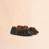 バレリーナシューズとアーカイブコレクションのギャザーシューズを融合した“SOFT BALLERINA”シューズ。レザーレースリボンで甲部分の調整可能。ストレッチの効いたレザーストラップ付き。