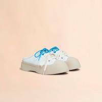 カーフレザー製の”PABLO”レースアップサボ。レザーライニングでシューズのタンにロゴ入りラベル付き。 コントラストカラーの2種類のシューレースが付属したダブルレース仕様。プラットフォームソールの背面にほどこされたロゴがアクセントに。