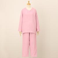 襟ぐりがVネックとラウンドネックと前後で着用できる2wayのパジャマ。袖口とパンツの裾は折り返して丈を調整しやすい見返し仕立てになっています。パンツは便利な両脇ポケット付き。<マシュマロガーゼ(R)とは>表面と裏面にやわらかな肌触りの撚りの少ない糸を使用し、中間組織に強度の高い撚糸を使用して3重以上の多層に織り上げた革新的なガーゼ素材です。やわらかな肌触りと強度を両立させ、保温性と通気性、吸湿・吸水性を兼ね備えた、年間を通じて快適にご使用いただける素材です。