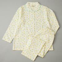 綿100%のダブルガーゼ素材は吸汗性、通気性に優れていて、ふんわりと柔らかい肌触りが特徴です。花柄プリントが優しいイメージ。上着右前にポケット付き、パンツのゴムは取替可能です。