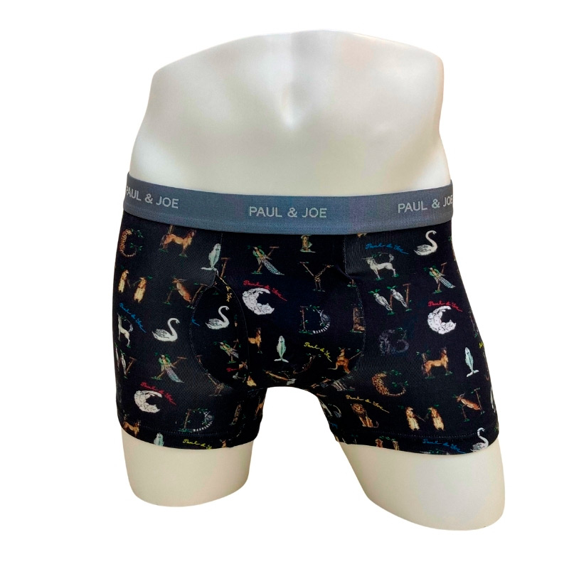 アルファベットと動物を組み合わせたシーズナブルデザインの前開きボクサーパンツ。スタイルのフロントは丸みのある立体的なパターンで圧迫感を軽減。素材はなめらかで柔らかい風合いが特徴の綿レーヨンベア天竺素材を採用。ウエストゴムは肌触りの良い裏パイル仕様。