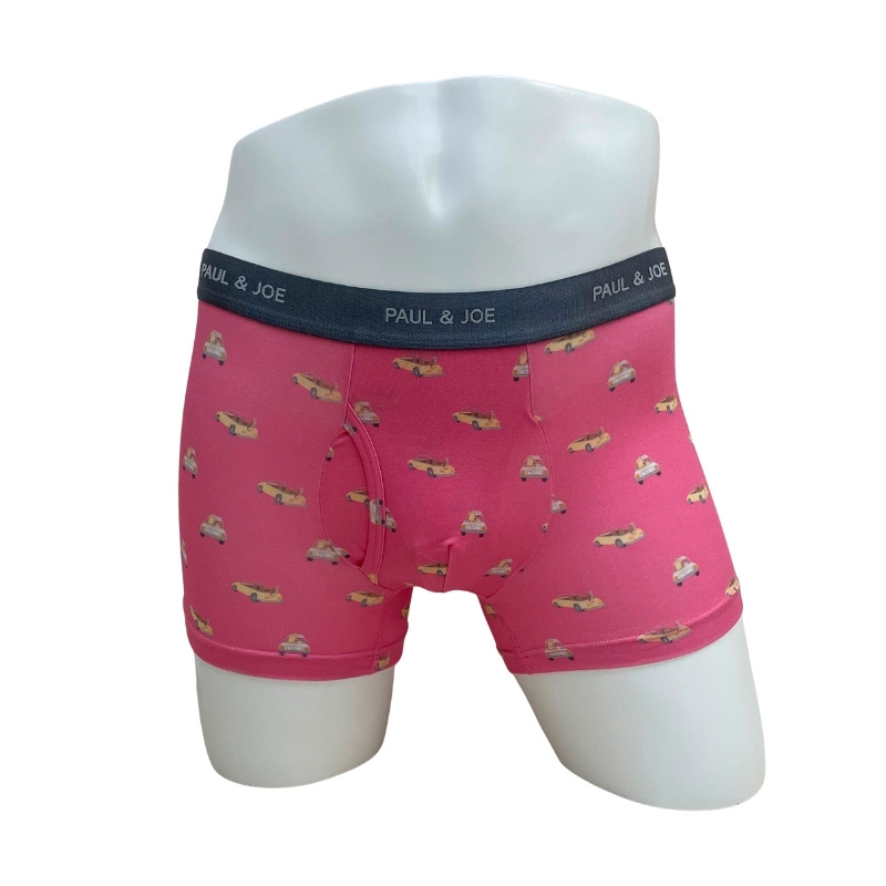 ヌネットがサーフィンに出かける姿をイメージし、デザインに使用した前開きボクサーパンツ。スタイルのフロントは丸みのある立体的なパターンで圧迫感を軽減。素材はなめらかで柔らかい風合いが特徴の綿レーヨンベア天竺素材を採用。ウエストゴムは肌触りの良い裏パイル仕様。