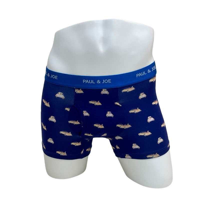 ヌネットがサーフィンに出かける姿をイメージし、デザインに使用した前開きボクサーパンツ。スタイルのフロントは丸みのある立体的なパターンで圧迫感を軽減。素材はなめらかで柔らかい風合いが特徴の綿レーヨンベア天竺素材を採用。ウエストゴムは肌触りの良い裏パイル仕様。