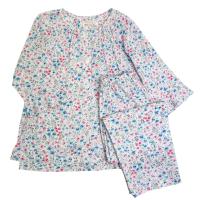 高島クレープ生地は、通気性が高くサラッとした肌ざわりで、夏に涼しくご着用いただけます。かわいい花柄をプリントした、小柄な方向けの7分袖長ズボンスタイルのパジャマです。プレゼントにもおすすめです。