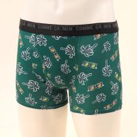 ヤシの木やサングラスを散りばめた遊び心ある総柄ボクサーパンツ。レギュラー丈、ウエストゴムは肌触りの良い裏パイル仕様、前開きタイプ。