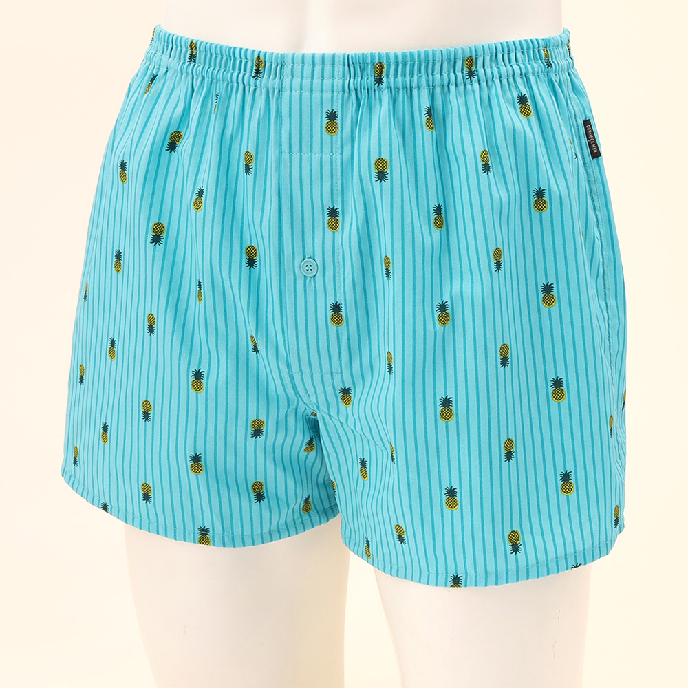 爽やかなデザインが魅力のパイナップル柄トランクス。ウエストは締め付け感が無い2本ゴム仕様でゆったりとした履き心地です。綿100%