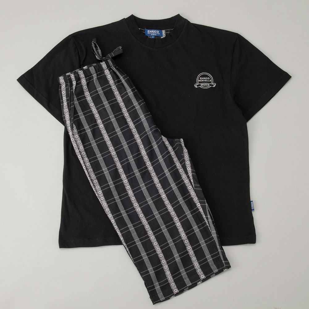 涼感素材の天竺半袖上着と、先染めしじら七分丈パンツで、パジャマとしても、ルームウェアとしてお使いいただけます。