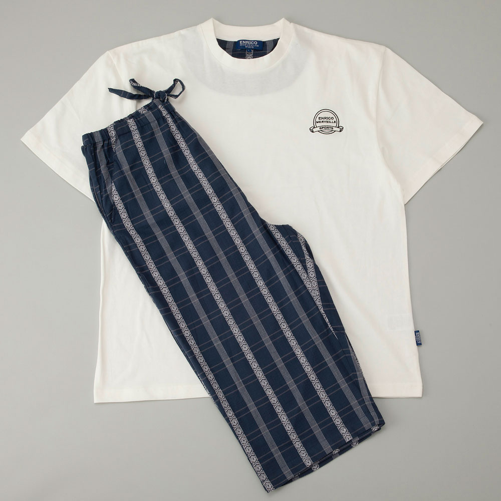 涼感素材の天竺半袖上着と、先染めしじら七分丈パンツで、パジャマとしても、ルームウェアとしてお使いいただけます。