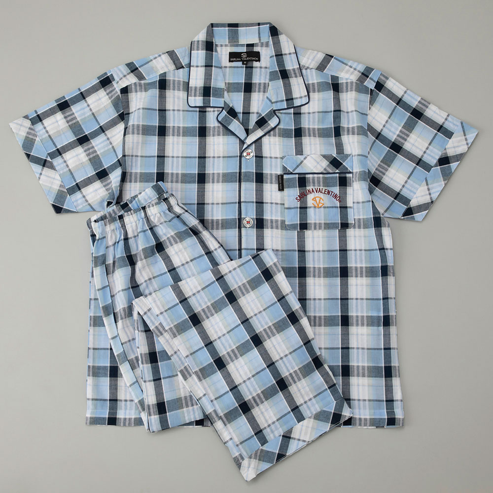 100%綿の半袖の先染サッカーシャツとパンツで、これからの季節に最適なパジャマです。