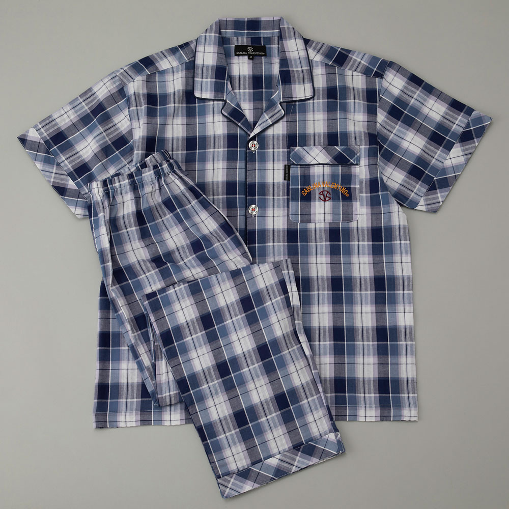 100%綿の半袖の先染サッカーシャツとパンツで、これからの季節に最適なパジャマです。