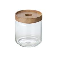 アカシアの木目が美しい蓋とガラスを組み合わせた保存容器です。お砂糖や塩などの調味料、ハーブやスパイスなどの保存にぴったりです。蓋の上部にはくぼみがあり、指をかけて開けやすいのが特徴です。どのサイズも蓋の大きさが一緒で縁があるので、スタッキング収納ができます。おしゃれに並べれば、インテリアとしても楽しむことができます。