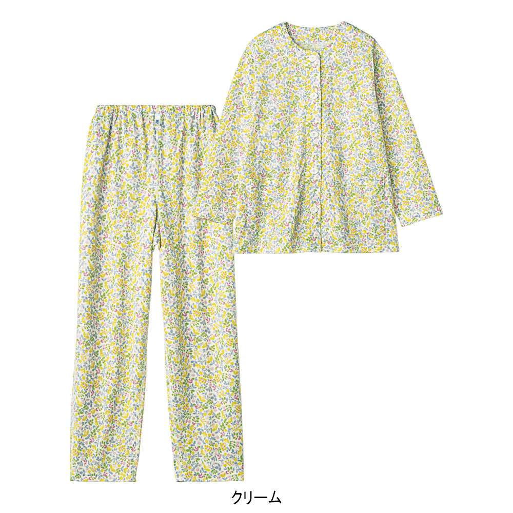 上衣:レモン型ボタン全開(5個)、左右ポケット付き、パンツ:ウエスト総ゴム(取替口付)