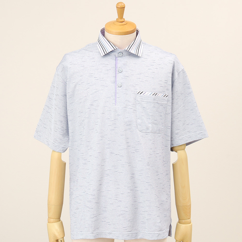 清涼感と吸水速乾性があり、ソフトな風合いを感じられる着心地。細かいドットでボーダー柄にしたおしゃれなポロシャツです。