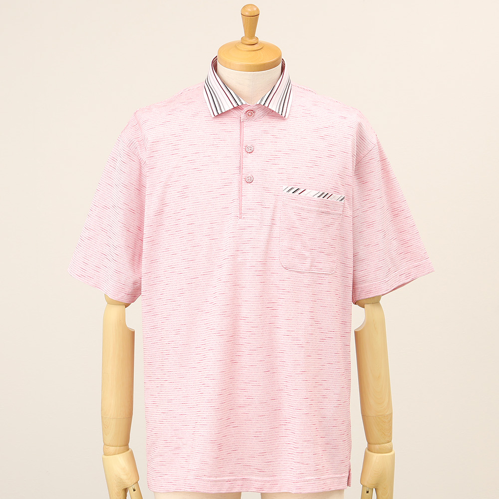 清涼感と吸水速乾性があり、ソフトな風合いを感じられる着心地。細かいドットでボーダー柄にしたおしゃれなポロシャツです。