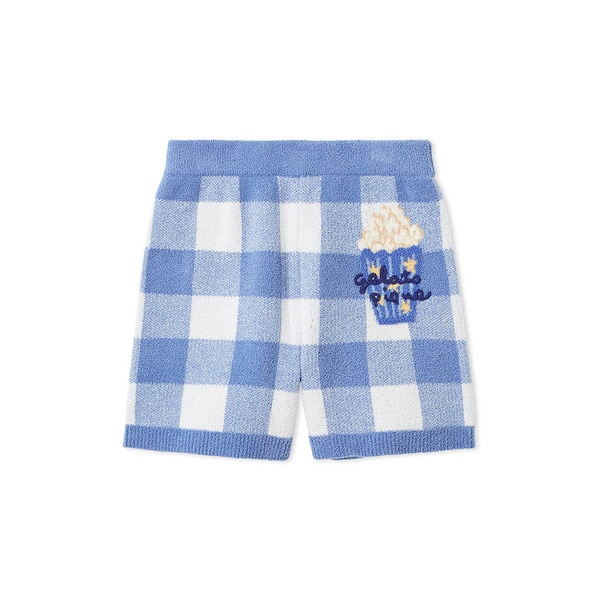 [Fabric]AIRY MOCO(エアリーモコ)・・・空気を身にまとっているような軽い着心地と、ライトな肌触りが魅力の「エアリーモコ」、通称エアリーモコ。ふかふかに焼き上げたスポンジのような風合いと、さらりとしたタッチで、ジェラート ピケのニットシリーズでは最も軽量。季節を問わず、爽やかな着心地がお好みの方にオススメです。[Design/Styling]明るくHAPPYなカラーリングに、カップケーキやポップコーンのモチーフをデザインしたファミリーで楽しめるニットシリーズです。ギンガムチェックを用いた「エアリーモコ」素材のKIDSショートパンツ。色は2色展開で、ピンクはカップケーキ、ブルーはポップコーンのジャガードを入れました。ふんわり軽いはき心地で、右後ろにポケット付き。親子で過ごすおうち時間を優しく演出します。同シリーズのパーカやカットソー、雑貨を合わせるのもおすすめ。BABYとのリンク・コーディネートもお楽しみください。