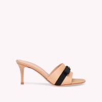 グログランとラフィア素材から丹念に作り上げたMinouミュールは、高さ70mmのスティレットヒールが際立つラウンドトゥのモデル。手作業によって仕上げました。