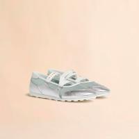 レトロなサッカーシューズが着想源のスニーカーとバレリーナシューズを融合した“RETRO BALLET”スニーカー。アッパーはメッシュとレザー素材を組み合わせ、ラバーソールには立体的なロゴをデザイン。
