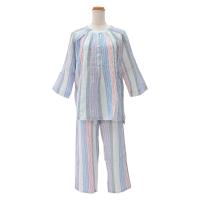 ふわっとやわらかい肌触りのダブルガーゼ シャーリング加工のパジャマ。七分袖(半開かぶりタイプ)九分丈パンツ。