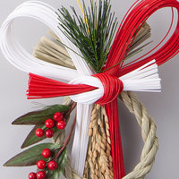 紅白の水引を使って上品に仕立てたお飾りです。「実りの多い年に」との願い込め、稲穂をあしらいました。新しい年のはじまりを華やかに演出します。