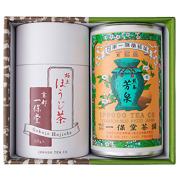 煎茶「芳泉」150g缶、「極上ほうじ茶」60g紙筒