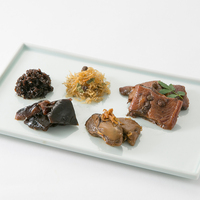 木の芽煮(80g)、山椒じゃこ(45g)、うなぎ山椒煮(55g)、かき生姜煮(60g)、椎茸こぶ(80g) 計5点