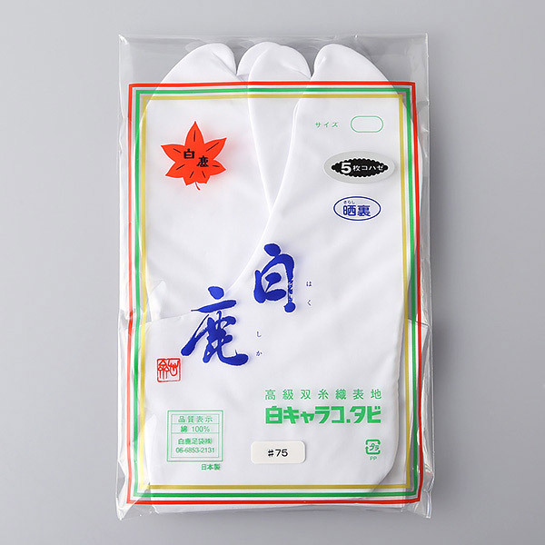 白鹿は、創業明治30年の足袋専業メーカー。一般の足袋に比べ、底幅を細く甲部分の生地を大きくすることによって、足を下から包み込んでほっそり見せるデザインが特徴。さまざまなシーンで幅広くご使用いただける白足袋です。※それぞれ蘭は幅の細い型、菊は標準型、梅は幅のゆったりした型をあらわします。