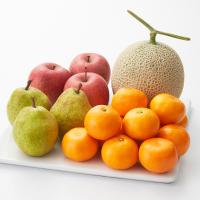 <熊本県産>アールスメロン 約1.2kg×1玉、<長野県産>サンふじ 約250g×3個、<和歌山県産>有田みかん 約1.2kg(12~20個)、<山形県産>ラ・フランス 約250g×3個