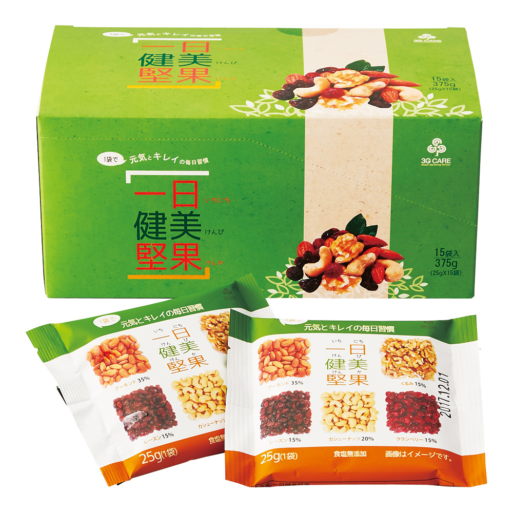 1袋にナッツ3種とドライフルーツ2種。食べきりタイプなので新鮮なおいしさです。