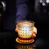 国産クリスタルガラスの中でも非常に珍しい琥珀色の江戸切子は高級感をより引き立てます。工芸士の優れた技と創造の結晶をお楽しみいただける至高の逸品です。
