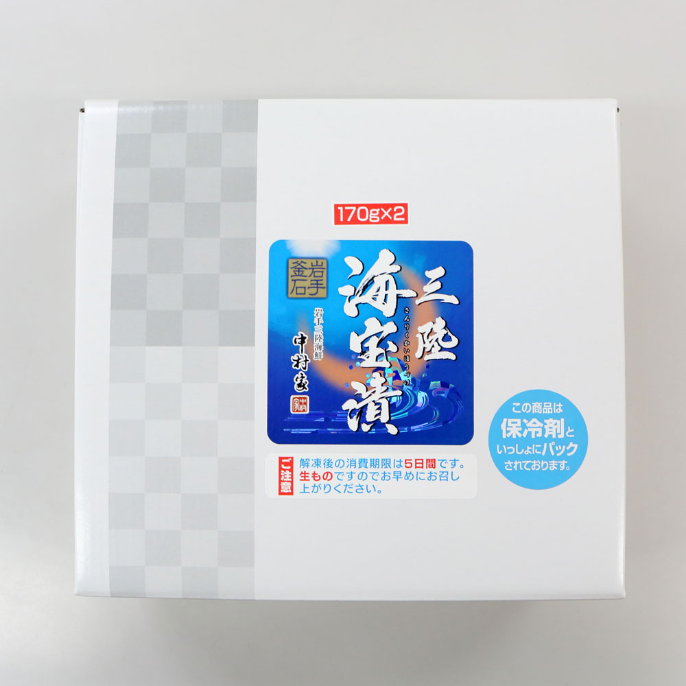 【冷凍便でお届けします。解凍まで時間がかかりますのでご注意ください。】豊富な魚介類が獲れる三陸の素材を活かして作った中村家オリジナルの一品。やわらかに煮あげたあわびに、いくら、めかぶを特製の調味液に漬け込んでいます。素材本来の旨味をお楽しみください。ご飯にかけるだけでなく、酒の肴やパスタにもおすすめです。食べきりサイズの三陸海宝漬が2個入ったセパレートタイプです。