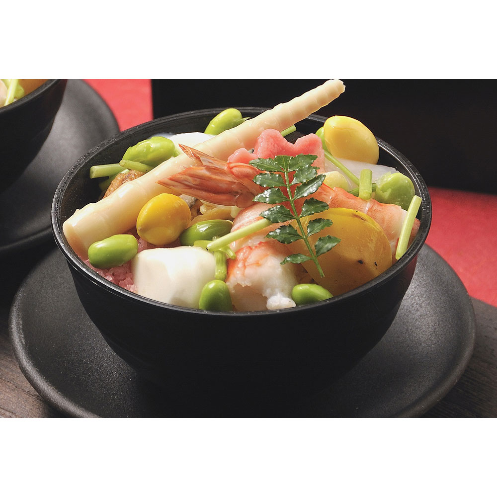 彩り鮮やかに盛られた「蒸し鮨」(ぬくずし)は、錦糸卵、椎茸、穴子など山海の幸をふんだんに使用しております。蒸し鮨のために開発された笹一オリジナルの甘酸っぱい酢飯と共に山海の幸をご堪能ください。