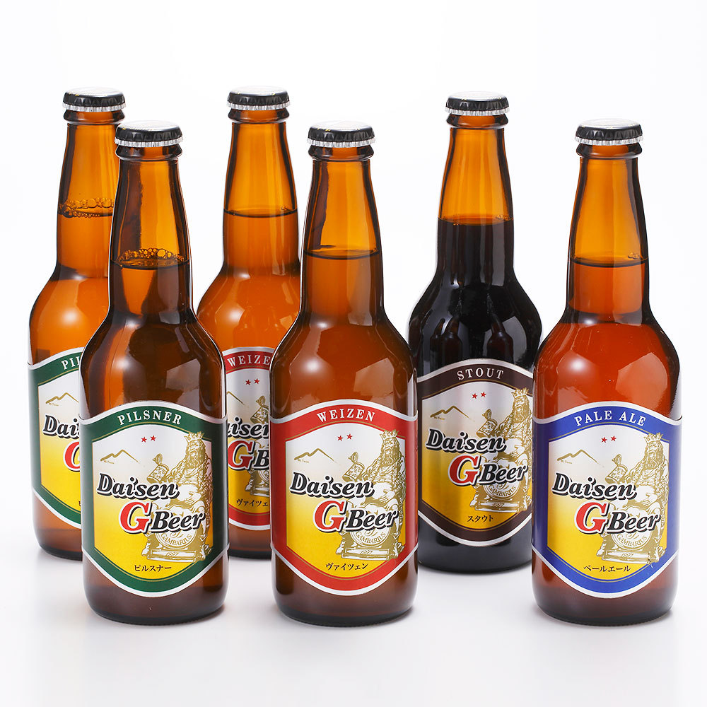 「大山Gビール」定番ビール4種の内3種「ヴァイツェン」「ピルスナ―」「スタウト」は、WBA(ワールドビアアワード)2025、2024にて、2年連続ジャパニーズウィナー金賞受賞、「ペールエール」は、WBA2024にて銀賞受賞。一番人気の「ヴァイツェン」は、バナナを思わせるフルーティーな香り、苦味を感じないレベルにまでおさえた、飲み口の良いビールです。「ピルスナ―」は、淡色モルトの穏やかな香り、低温で長期間の熟成をおこなった、すっきりとした爽快感。「ペールエール」は、フラワリーでフルーティーな香り、心地よい苦味とすっきりとした飲み口が特徴の淡色ビール。「スタウト」は、高温焙煎麦芽由来の珈琲を思わせる香り、なめらかな味わいが特徴です。