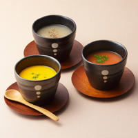 京野菜を使用した3種類の温かいスープの詰合せ。