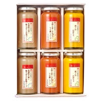 鹿ヶ谷かぼちゃのクリームスープ160ml×2、金時人参と玉ねぎのうら漉しスープ160ml×2、聖護院大根と鶏そぼろの和風スープ160ml×2 計6点