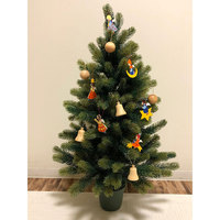 クリスマスツリーの枝は幹と一体で、たたんだ状態で箱に収納されていますが、簡単に広げられます。枝葉の芯には針金が入っており、葉の向きを調整して形や枝ぶりを整えることができます。一本一本に張りがある葉の色は3段階のグラデーションになっていて、本物のもみの木のようです。枝葉が密集しているので、ずっしりとした安定感と存在感があります。木製の天使はひとつひとつ異なる姿のかわいらしい天使が6枚です。木の玉と木の鐘は素朴なかわいらしさが特徴です。