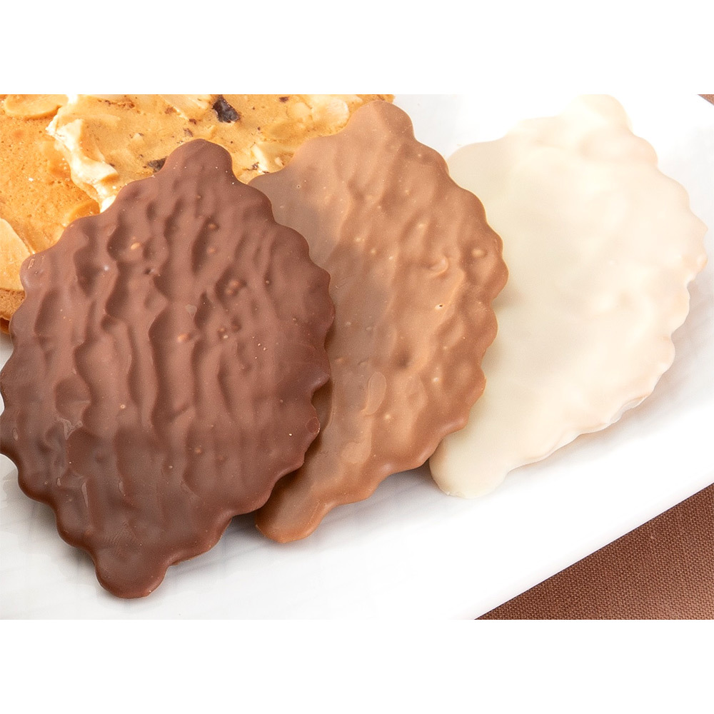 香ばしいアーモンドスライスの風味を引き立てるため軽く仕上げたファヤージュの生地に、こだわりのチョコレートをコーティングしました。濃厚でリッチな味わいの一枚が、贅沢なひとときをお届けします。