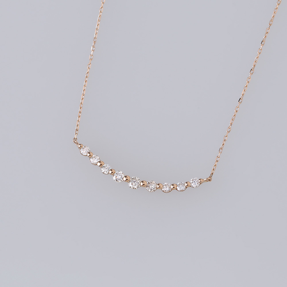 緩やかなカーブを描くフォルムに、輝きの良いダイヤモンド9石をグラデーションセッティングしました。デイリー使いにぴったりなペンダントです。