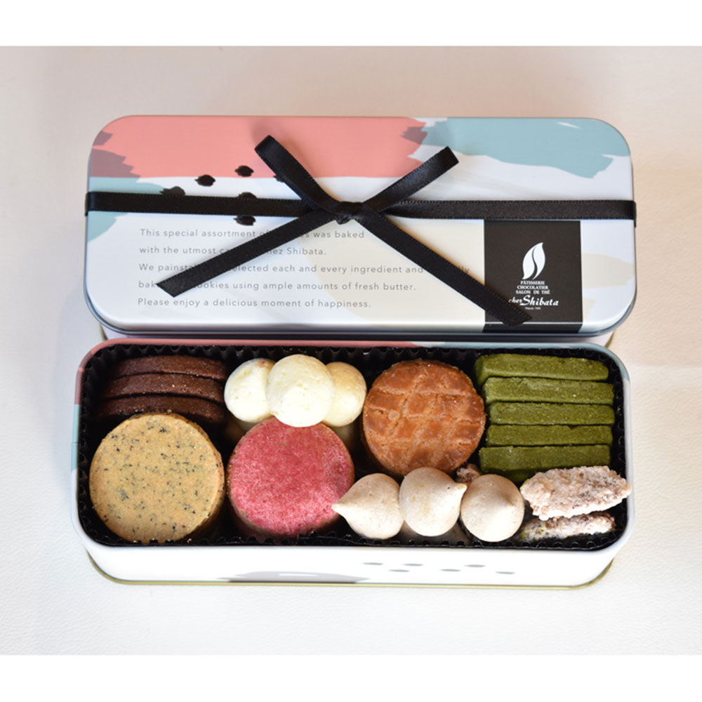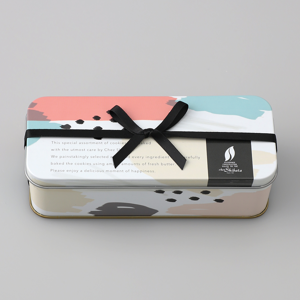 ペールトーンのカラフルな色でデザインされた缶の中に、クッキーをぎっしり詰めました。さくさく、ほろほろっとした食感のアップルティーやほうじ茶味のメレンゲなど、シェ・シバタならではの味をお楽しみいただけます。