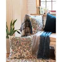 ウィリアム・モリスの次女メイが、別荘「ケルムスコット・マナー」で使われていたベッド掛けをヒントに、刺しゅうで表現したデザインを、織物にしました。同じ色調の中でも柄がより引き立つよう、ゴブラン織の手法を参考に、立体感を生み出しました。