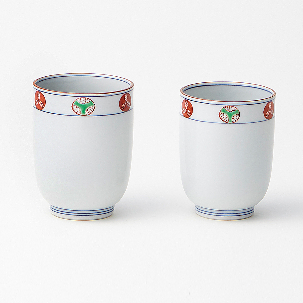 渕に丸紋を染付と色絵で描いたシンプルな湯呑です。