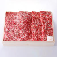 肉質はきめ細やかで、輝くようなつやがあり見栄えもいいロース肉と、濃厚な味わいと鮮やかな霜降りが特徴のバラ肉を、焼肉用にカットしました。木箱に詰めてお届けいたします。