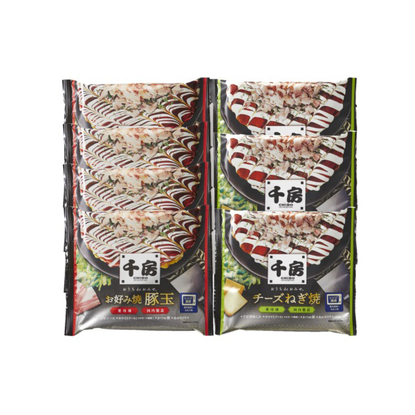大阪千日前にて1973年創業のお好み焼の名店「千房」の味をご家庭で。特製のお好み焼ミックス粉を使い、ふっくらと焼き上げたお好み焼「豚玉」と2種の濃厚チーズをトッピング、ねぎの風味と濃厚チーズのコクのある味わいに醤油たれがベストマッチした「チーズねぎ焼」のセットです。電子レンジで温めるだけで手軽にお召し上がりいただけます。