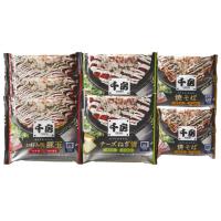 特製のお好み焼ミックス粉を使い、ふっくらと焼き上げたお好み焼「豚玉」、ねぎの風味と濃厚チーズのコクのある味わいに醤油たれがベストマッチした「チーズねぎ焼」、オリジナルの中太麺を使用し豚肉と野菜を加えソースを絡めて焼き上げた「豚焼そば」のセットです。電子レンジで温めるだけで手軽にお召し上がりいただけます。